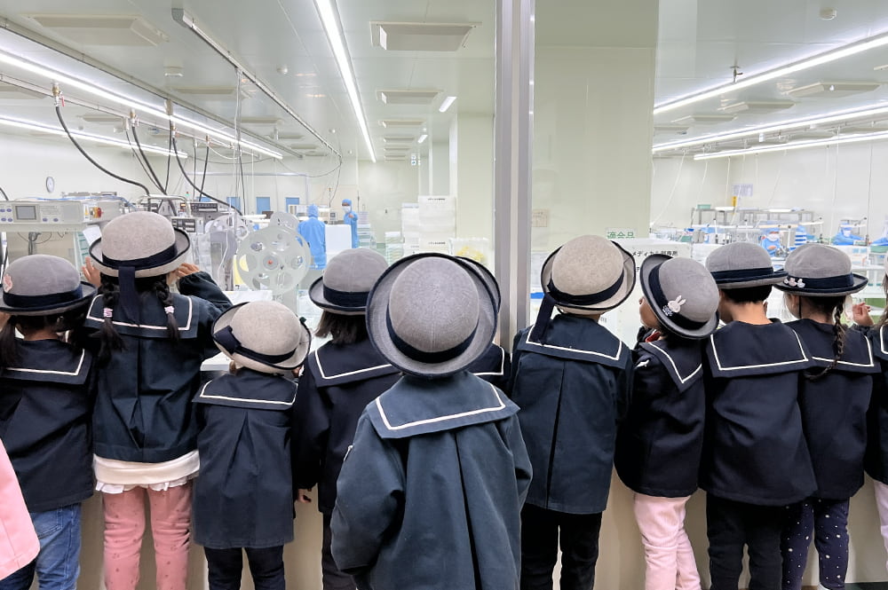 次世代に向けた教育支援や地域交流の一環として、地域の子供たちの工場見学を行っています。 医療や電機など様々な製造業の現場を見て、職業やものづくりについて知る学びの機会を提供しています。