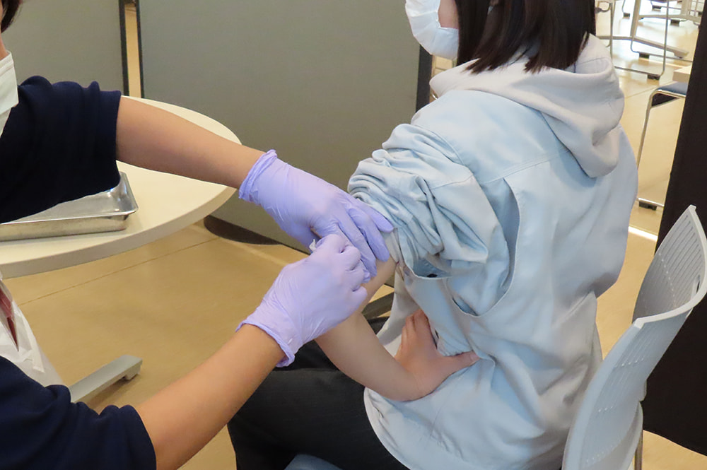 定期健康診断の他に、本社工場で毎年のインフルエンザ予防接種の実施等を行っています。 コロナ禍では基本的な予防策の他、地域・取引先企業を含めたワクチン接種の実施やマスクの配布など、出来る限りの対策を行いました。